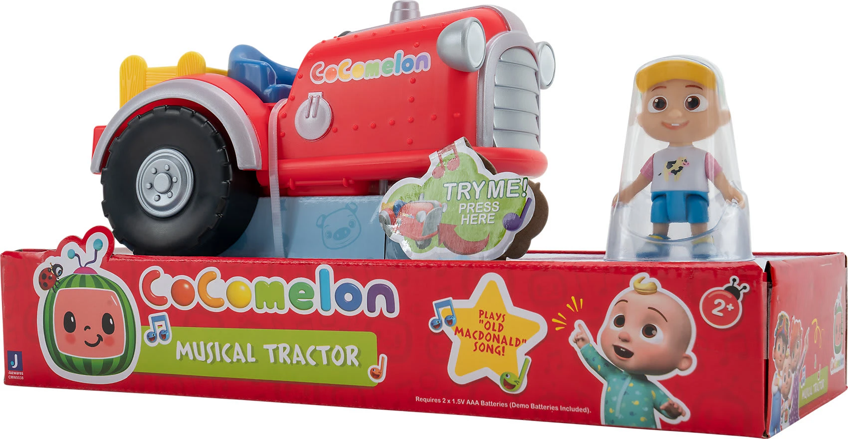 Musikalisch unterwegs auf dem Land. Dieser coole Spielzeugtraktor bietet nicht nur echtes Bauernhoffeeling mit coolen Motoren- und Tiergeräuscheffekten, sondern auch eine melodische Untermalung. “Old Mac Donald” hat der Fahrer JJ nämlich genauso drauf, wie das Intro der bekannten “Co Comelon”-Serie. Hier können Kids fröhlich mitsingen und mit JJ über Wiesen und Felder tuckern.