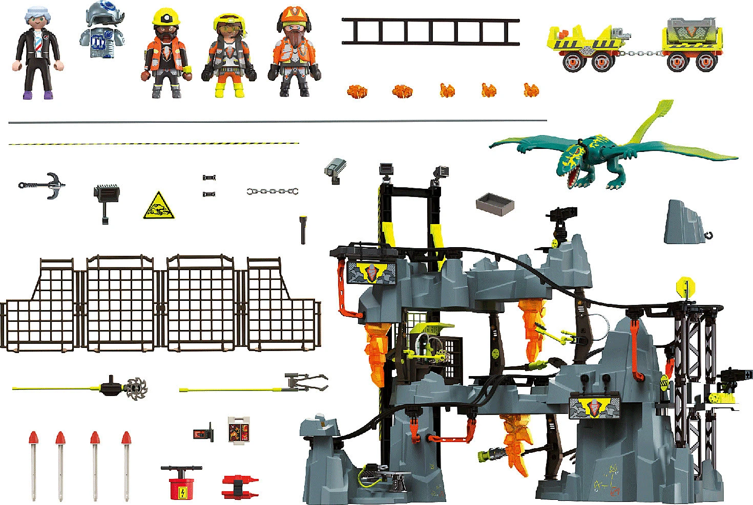 In dem spannenden Kampf um die wertvollen Energiesteine geht es für das Team Dino Rise in eine neue Runde. Mit dem umfassenden Spielset PLAYMOBIL® Dino Mine (70925) geht es unter die Erde zu den “Miners”. Die Minenarbeiter haben ein Schienennetz gebaut, das sich wie eine Achterbahn durch den Felsen zieht. Die Freunde vom Dino Rise Team müssen sich im 2. Kapitel der Serie einen Weg durch die Mine suchen und treffen in den Tiefen der Felsen die Miners, von denen man nicht so genau weiß, auf welcher Seite sie stehen. Sicher ist aber, dass sie einen bisher unbekannten Freund des Dino Rise Teams gefangen halten: einen Dimorphodon. Der Weg durch die Mine birgt Gefahren, Überraschungen und Abenteuer. Die Minen-Gang hat Fallen eingebaut: So droht durch das Umstellen der Weichen der Absturz in die Tiefe und wilde Fahrten über die Bahn abwärts und mit dem Aufzug aufwärts sind garantiert. Wo wird der kleine Dino-Freund gefangen gehalten und wird es Kaidan vom Team Dino Rise gelingen die Minen-Arbeiter von einer Zusammenarbeit zu überzeugen, oder kommt es zur Auseinandersetzung? In dem coolen Spieleset enthalten ist eine Minenkulisse mit Gleisanlagen, Weichen, einem Aufzug und Minencruisern zum Befahren der Mine. Außerdem enthalten sind Dino Rise Teammitglied Kaidan, der Anführer der Minen-Gang, zwei seiner Schurken und viele Zubehörteile für kreativen Spielespaß.