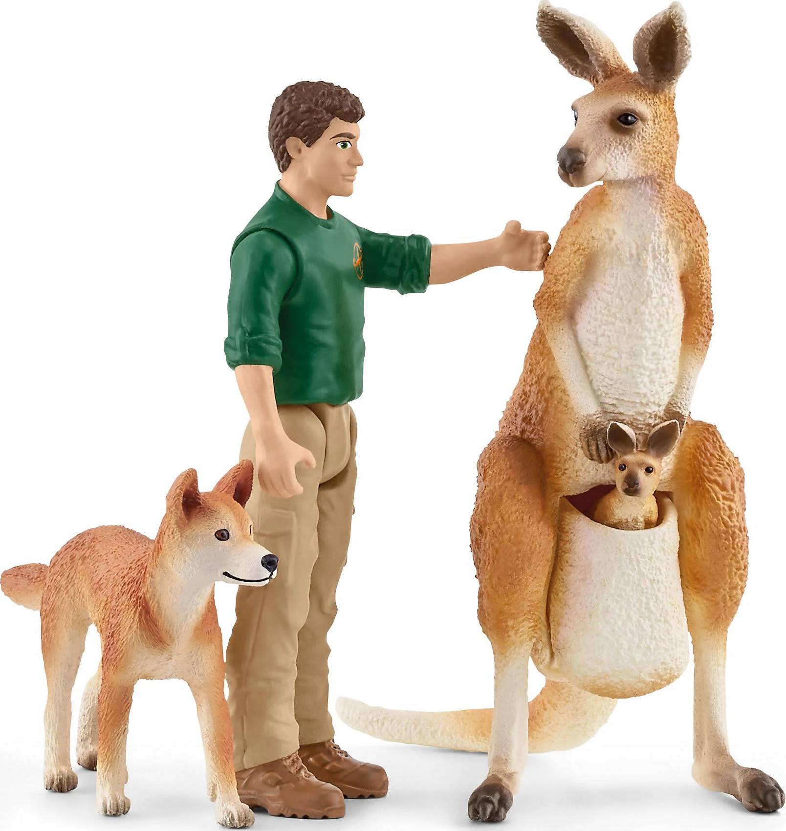 Dieses Schleicht Wild Life-Set lädt ein zu tollen Abenteuern im Outback! Mit dabei sind ein Känguru mit Baby sowie ein Entdecker mit seinem treuen Hund.